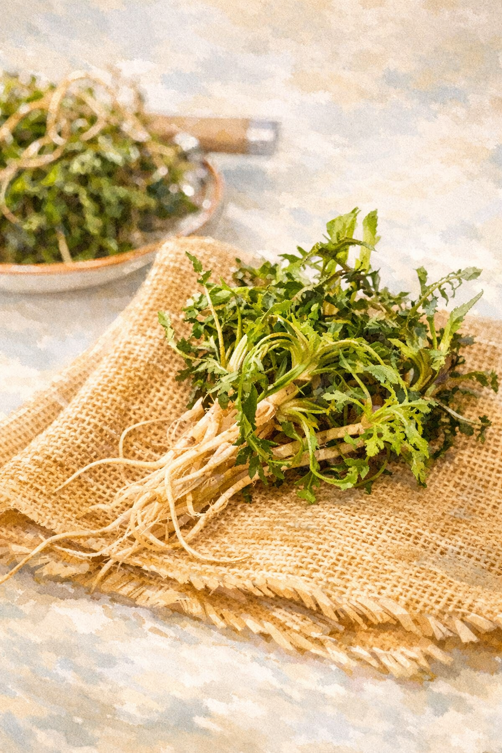 절대 안 됩니다. 간을 살리는 핵심 성분인 콜린은 잎보다 뿌리에 훨씬 많이 들어있기 때문입니다. 뿌리를 칼로 살살 긁어 흙만 털어내고 꼭 통째로 드셔야 냉이의 치유력을 100퍼센트 흡수할 수 있습니다.