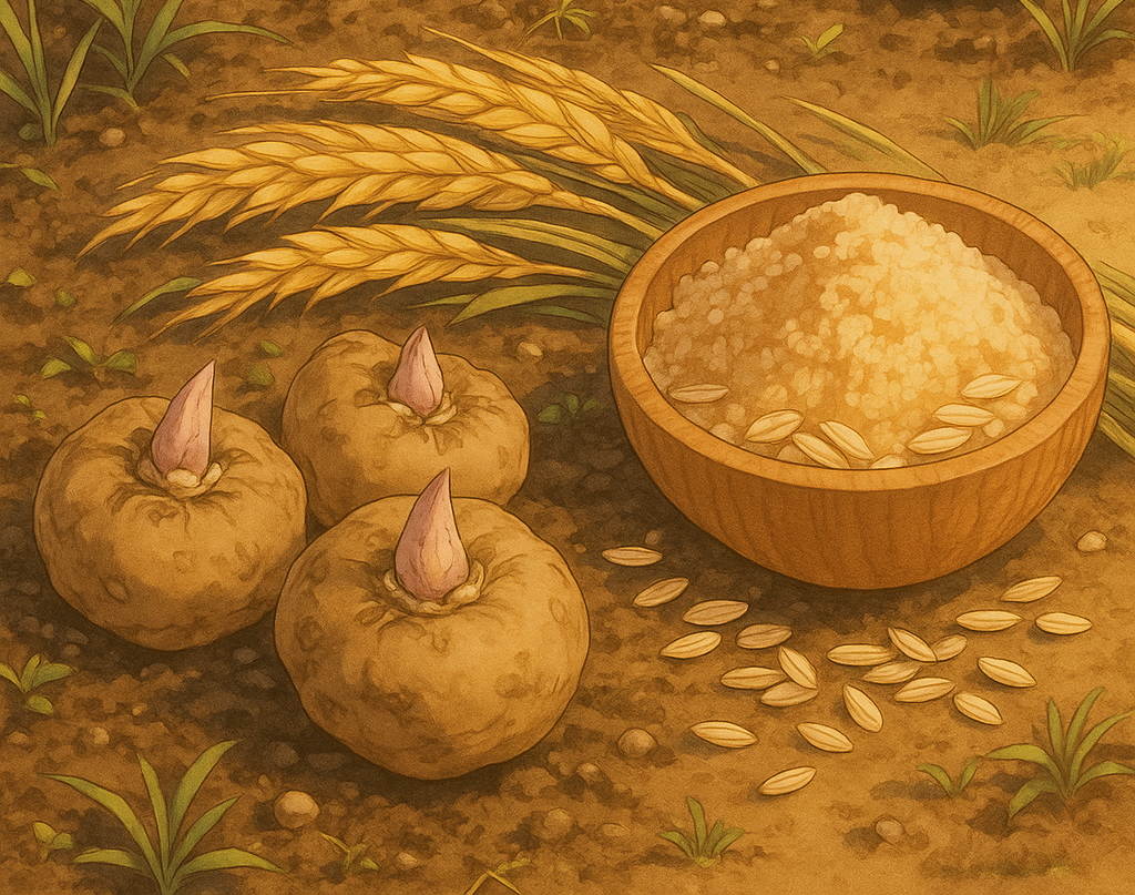 시중에는 다양한 세라마이드가 있지만, 식약처로부터 '피부 보습에 도움을 줄 수 있음'을 인정받은 대표적인 식물성 원료는 곤약감자와 쌀겨입니다. 이 식물들에는 세라마이드의 전구체인 글루코실세라마이드💡가 매우 풍부하게 함유되어 있습니다.