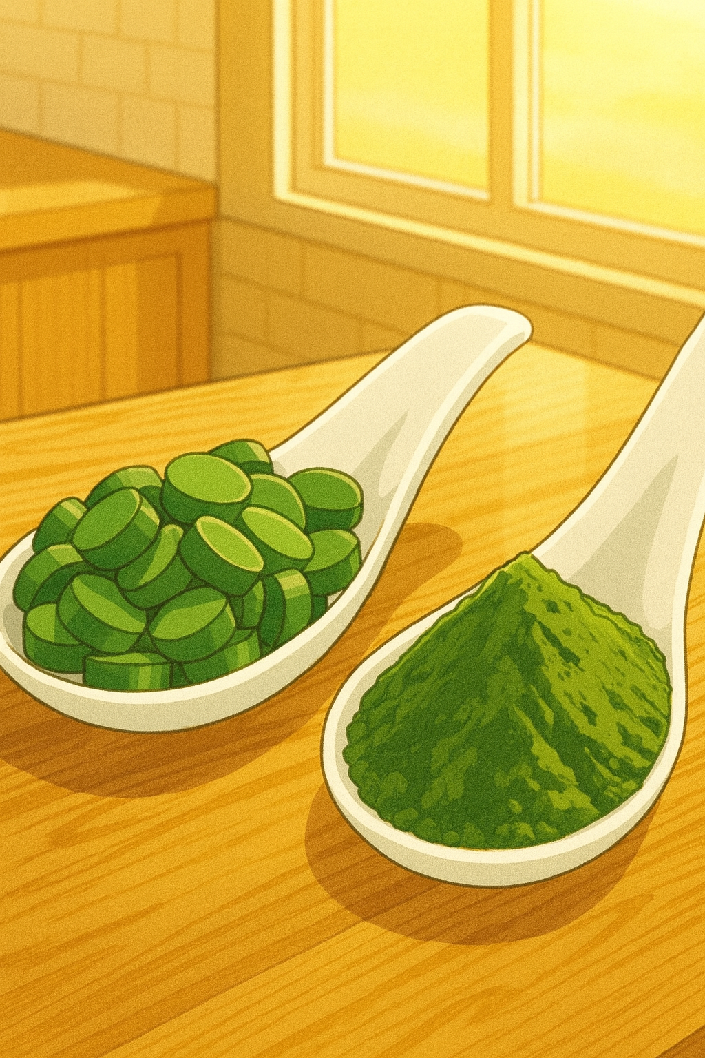 클로렐라는 미세조류로 세포벽이 단단해 ‘크랙드 셀’ 공정 제품이 많고, 엽록소 함량이 높은 편입니다. 스피루리나는 시아노박테리아로 소화가 더 쉽습니다. 두 성분 모두 보조제로 쓰일 수 있지만, 특성이 다르니 목적에 맞게 선택하세요.