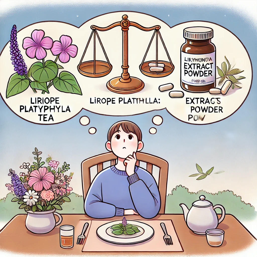 맥문동은 전통적으로 차로 끓여 마시거나 한방 약재로 활용되어 왔으며, 현대에는 추출물 형태로 가공되어 건강기능식품으로도 제공됩니다. 두 가지 형태 모두 건강에 유익하지만, 섭취 방법과 유효 성분의 흡수율에서 차이가 있습니다.